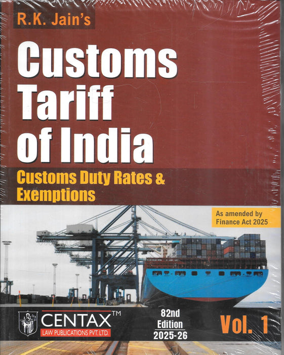 R.K. Jain's Customs Tariff of India – Vol. 1 (82nd Edition, 2025–26) is a comprehensive reference on customs duty rates and exemptions, updated as per the Finance Act, 2025. It provides a thorough compilation of tariff schedules, duty structures, and exemptions applicable to imported goods in India. Extensively used by customs officials, tax professionals, legal consultants, and import/export firms, this volume ensures legal clarity and practical usability in customs classification and duty application.